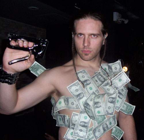 | The Staple-Man act has been one of Mar Omega's most popular performances with the New York and New Jersey clubs. It's popularity most likely comes from the fact that it only costs the venue $50 + whatever tips Mar has stapled to his body. Freaky and affordable, this act brings out the morbid curiosity in your patrons at a fraction of the cost of other performances. What is the Staple-Man act? Simply put, Mar Omega walks around your club with a staple gun, loaded with 1/4 inch staples and your patrons tip him by stapling money to his chest, arms and back. Mar Omega has almost never bled durring this performance, which sometimes last up to 5 hours. He uses only sterilized staples and this act is safe for both the patron and the performer. | |||